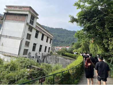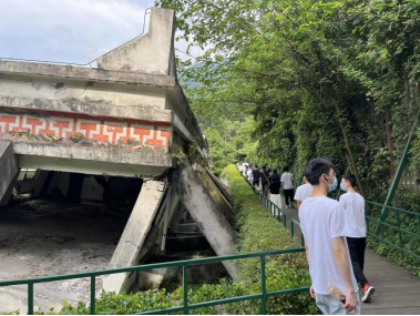 活动伊始,黄成兵教授、刘华清老师带领全体学生代表前往“5·12”汶川特大地震漩口中学遗址,回顾了抗震救灾、灾后重建、灾区振兴的伟大工程;了解了抗震救灾涌现的感人故事、英雄事迹;学习了在党和政府的领导下,广大灾区人民、自强不息、浴火重生的伟大的抗震救灾精神。