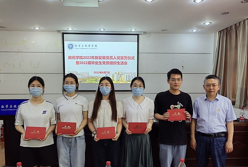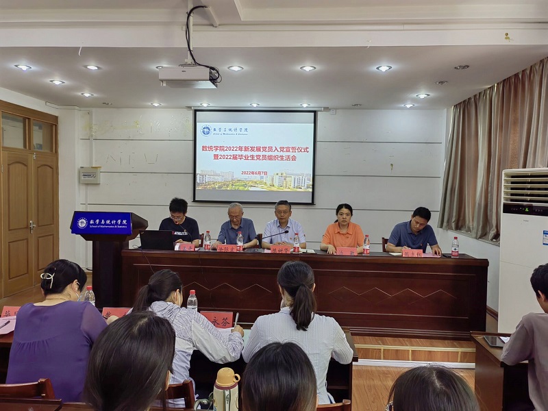 为加强学生党员理想信念教育,强化学生党员的使命意识和担当精神,充分发挥毕业生党员的先锋模范带头作用,2022年6月7日下午,数统学院在学苑南楼五号楼二楼会议室,召开新发展党员入党宣誓仪式暨2022届毕业生党员组织生活会,学院党委书记陈树贤,院长汤敏,院党委副书记芮先红,院关工委常务副主任徐际宏,以及各研究生、本科生学生党支部书记,全体2022届毕业生党员,2022年新发展党员参加会议。会议由学院党校班主任陈孟奇主持。