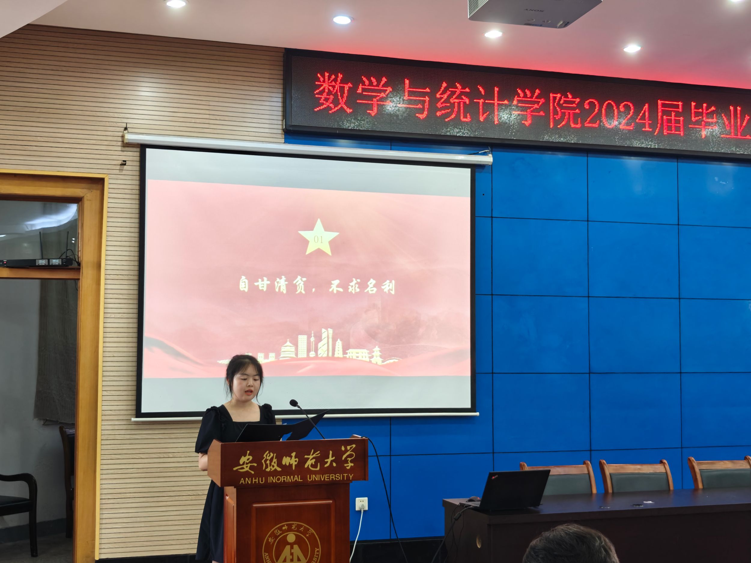 紧抓有利时机,强化氛围营造。结合党纪学习教育安排,学院党委副书记、纪委书记芮先红为全体学生党员讲授题为“深入学习贯彻《中国共产党纪律处分条例》,做遵规守纪的时代先锋”的党纪学习教育专题讲座。将廉洁教育前置,融入到师范生培养见习环节,利用2021级数学与应用数学(师范)专业校内见习时机,邀请马克思主义学院陶永华教授作“用心塑师德,以爱铸师魂”主题报告。结合毕业生文明离校和毕业生党员教育管理工作安排,邀请学院关工委常务副主任徐际宏为全体毕业生讲述自己大学期间亲身经历安徽师范学院更名为皖南大学这一历史事件中发生的党纪故事,教育引导广大毕业生自觉遵纪守纪。