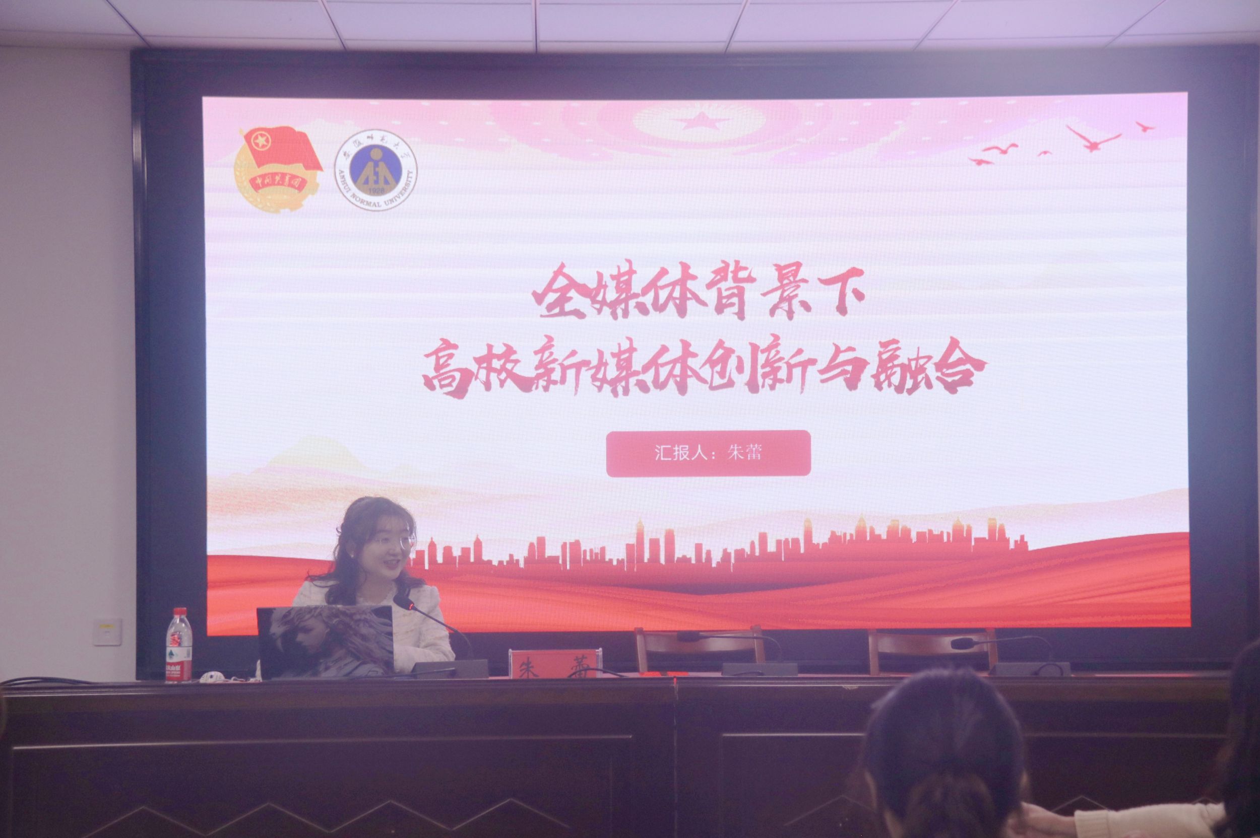 校团委朱蕾以摄影摄像技能及新媒体账号运营工作展开培训,着重阐述宣传工作与新闻传播的重要价值,并从摄影摄像、新闻稿写作、短视频制作、主题创新等维度详细讲解实用技巧。鼓励大家勇于创作、敢于创新,在宣传中精准把握新闻传播的“尺度”。
