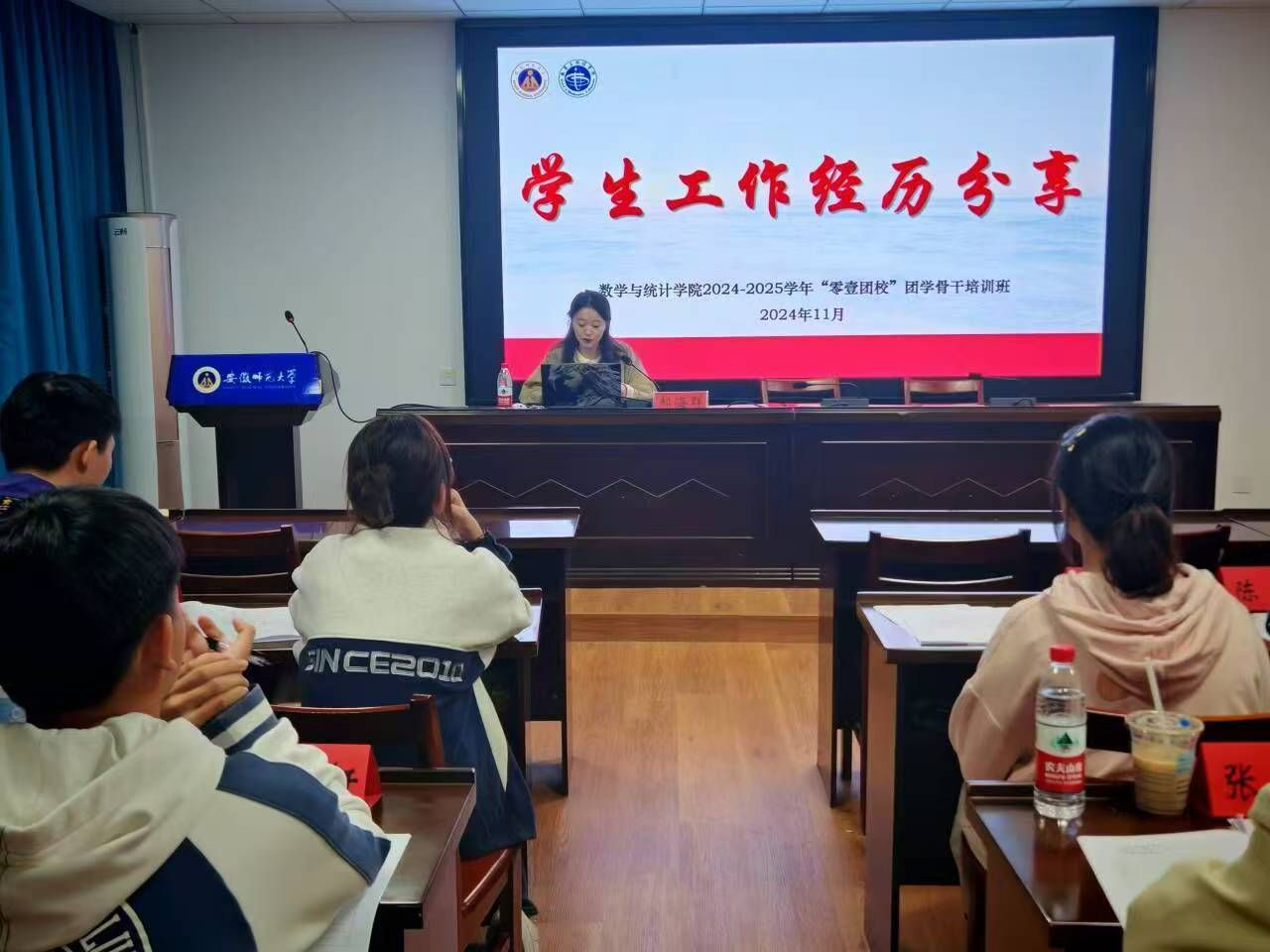 近日,数学与统计学院团委举办了第八期“零壹团校”团学骨干培训班,旨在提升团学骨干思想政治素养及工作能力,发挥其先锋带头作用,促进学院基层学生组织的建设发展。