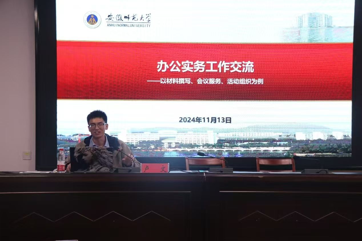 校办公室卢文带来了办公务实工作培训。他以材料撰写、会议服务、活动组织等工作内容为切入点,结合实际案例,深入剖析并分享实际工作中的技巧与宝贵经验。他鼓励学员们充分抓住此次培训机会,积极投身学生干部工作,实现综合素质的全方位提升,为未来发展筑牢根基。