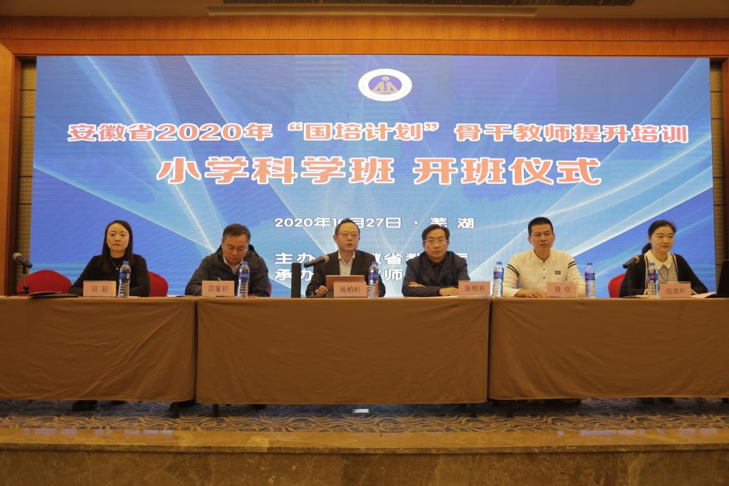 2020年10月27日上午,由安徽省教育厅主办、安徽师范大学承办的安徽省2020年“国培计划”骨干教师提升培训小学科学研修班举行开班仪式。安徽师范大学新闻与传播学院执行院长,支部党员杨柏岭,研修班首席专家、生命科学学院教授陈明林,研修班“影子导师”领队、安徽师范大学附属小学副校长茆家祥,新闻与传播学院副院长周伍、研修班班主任田超、王旭和百余名安徽省小学科学骨干教师学员参加开班仪式,安徽省青少年媒介素养教育基地副主任,党员赵忠仲主持仪式。