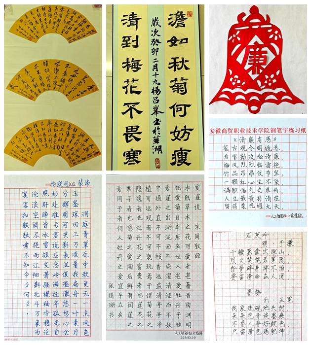 弘扬崇廉拒腐社会风尚。学院结合专业特色,充分发挥了文化倡廉、氛围促廉作用,通过二课平台广泛开展书画、海报、手工等廉洁文化原创作品设计、评比、展示活动。一系列特色鲜明、氛围浓厚的廉洁文化作品,宣传阐释廉洁思想,进一步挖掘廉洁文化元素,使廉洁教育更接地气、更润人心,在学院营造了浓郁的廉洁文化氛围,推动以清为美、以廉为荣蔚然成风,扩大了廉洁文化的覆盖面和影响力。通过熏陶和化育,使师生在文化浸润中塑造品格修养,立志在往后学习生活中做到内化于心、外化于行,践行廉洁修身美德,练好内功、提升修养。充分发挥廉洁文化的教化功能,推动校园廉洁文化建设。