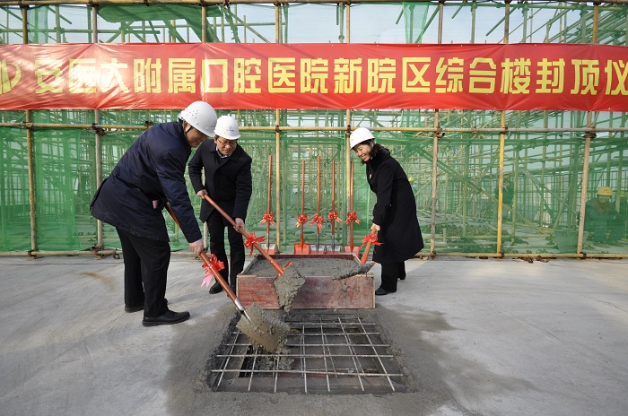 1月15日上午,经过1年多的紧张施工,我院新院区建设项目主体结构顺利完成结构封顶。校党委书记顾家山、校长曹云霞,副校长、附属口腔医院新院区建设项目指挥长梁朝朝出席封顶仪式,并共同为新院区综合楼挥锹封顶。