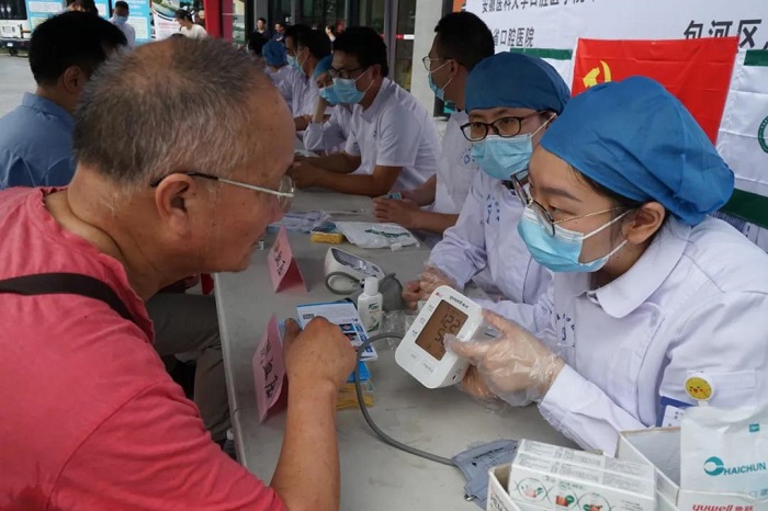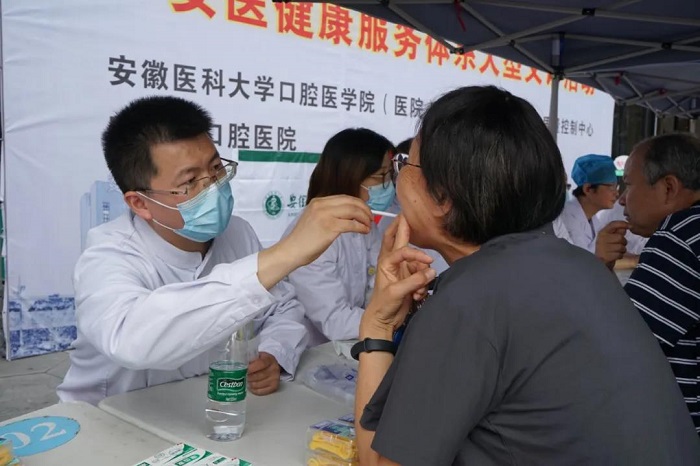 6月26日上午,我院还与肥西县铭传乡共同举办主题为“与党同行 服务基层”的义诊活动。活动加强了基层党支部建设与联系,惠及当地百姓,传播口腔健康理念。我院医师仔细检查居民朋友们的口腔状况,分享刷牙技巧、选择牙刷、选择牙膏、维护牙刷、维护假牙、种植牙益处等口腔健康小常识。悉心讲解了口腔保健、牙齿预防保护、老年人牙齿保健方面的常识,并针对不同情况为每位诊治的居民提出治疗建议。