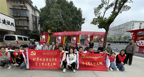 10月14日,我院学生第二、第三党支部与黄梅剧艺术学院直属党支部的学生党员组成联合支部赴安庆市大观区花亭北村社区敬老院送温暖,陪伴老人欢度重阳节。