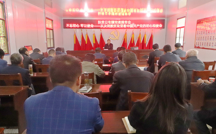 10月15日,在第7个国家扶贫日、第28个“国际消除贫困日”来临之际,校长闵永新赴我校定点帮扶单位太湖县天华镇西冲村,为定点帮扶村党员群众送去题为《不忘初心 牢记使命——从决战脱贫攻坚看中国共产党的初心和使命》的专题党课报告。