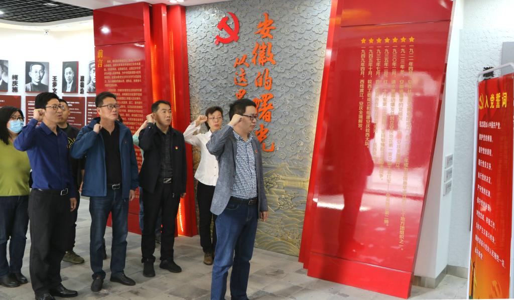 在中共安庆建党会议旧址陈列馆,一幅幅珍贵的图片、翔实的史料生动书写了“安徽的曙光,从这里升起”的历史。党员们重温入党誓词,认真聆听柯庆施等老一辈革命家的先进事迹,深入了解中共安庆支部作为安徽第一个城市党组织的诞生历程。