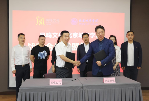 签约仪式上,艺术工美党支部书记、艺术设计学部主任王利民与凤鸣文化执行副总经理宋洋代表校企双方签署了战略合作协议。根据协议安排,双方将在实习就业、设计服务、文化竞赛、音视频产业发展等方面开展合作。随后,副校长练玉春与凤鸣文化董事、总经理陈晖为北京城市学院与凤鸣文化校企合作战略联盟揭牌。