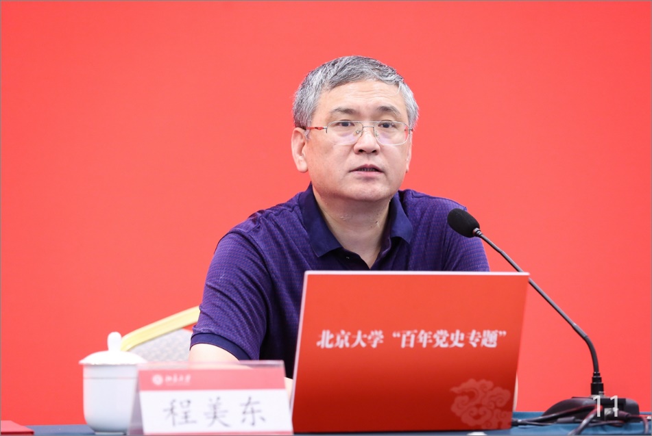 2021年5月19日晚,北京大学“百年党史专题”课程第六讲在英杰交流中心月光厅开讲。讲座以“昂首挺立阔步前进的社会主义新中国”为主题,由马克思主义学院程美东教授主讲。马克思主义学院王久高副教授主持讲座。