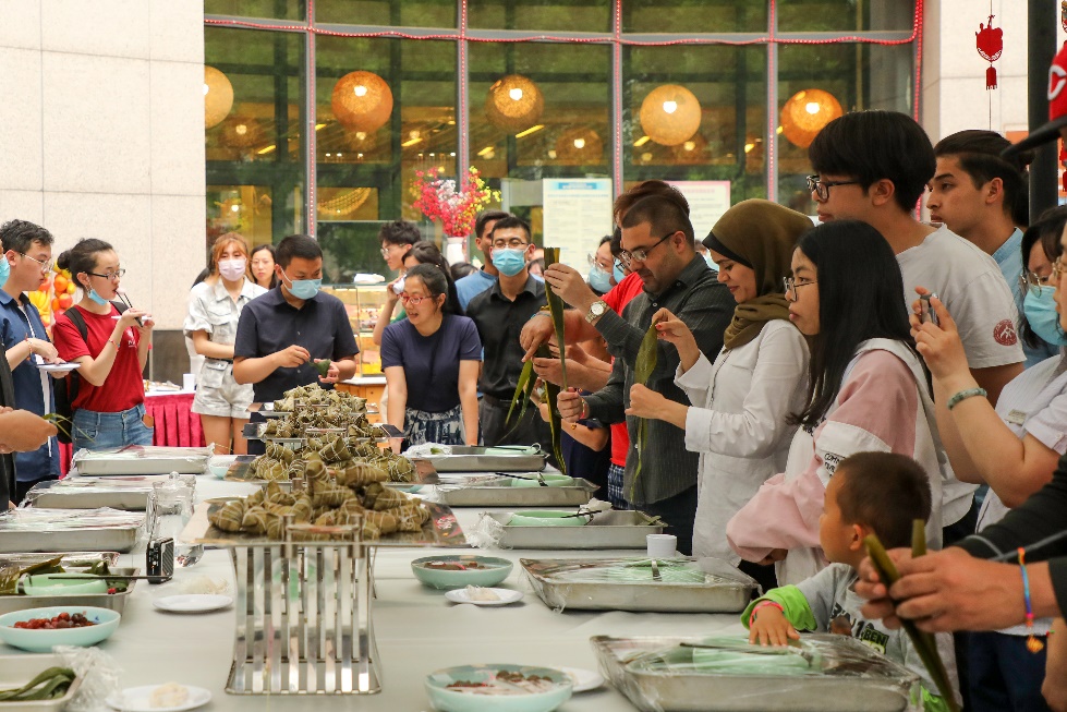 临近端午时节,勺园中餐厅推出“南北咸甜”香粽礼盒,精美的礼盒点缀着北京大学的特有元素,为学校师生提供了特别的节日伴手礼。勺园和中关新园还组织外国专家和留学生们举办端午节活动,工作人员精心准备,向国外师生讲解“端午节”的来源、相关习俗以及饮食文化等知识,并带领大家体验包粽子的乐趣,增进大家对中国传统文化的理解。