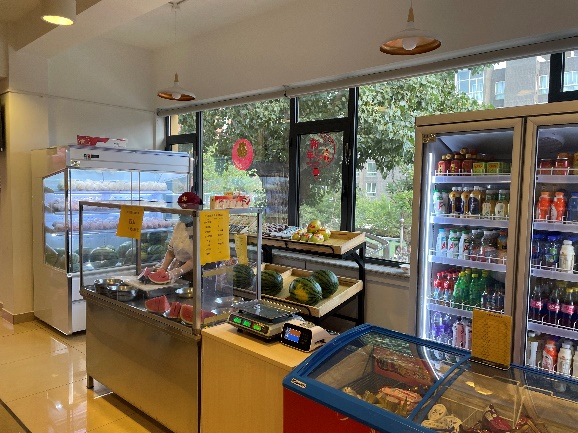 中关园食堂自开业以来,菜肴常吃常新,主食花样繁多,颇受周边院系及教工家属好评。食堂受制于售卖空间狭小,可用档口紧张,就餐师生多次提出希望增设水果售卖服务的建议。餐饮中心高度重视,经过运行保障室、食堂管理与监督室等相关部门多次实地调研,最终确定改造方案,在维持中关园食堂原有整体风格,并最大限度避免挤占就餐餐位的前提下,在食堂二层南侧增设了水果饮料区。今年夏天,同学们在中关园食堂内便能吃到清凉解渴的冰镇西瓜,选购新鲜可口的各式水果,满足了师生就餐需求。