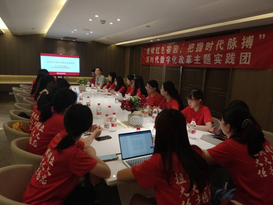 为引导学生深入、系统学习党史,在党史学习中深入体会我国国家制度和国家治理体系的巨大成就和显著优势、深度感悟数字赋能对推进国家治理体系和治理能力现代化的重要作用,塑造学生对数字政府、数字经济、数字社会、数字法治的整体把握,北京大学法学院于2021年7月10日-14日组织师生赴浙江省嘉兴市、杭州市开展“赓续红色基因,把握时代脉搏”主题思政实践课程。课程由法学院就业指导办公室主任傅程榆担任任课教师,2019级法学博士刘水长、2020级法学博士郑悠然、2020级法律硕士张大原担任课程助教,18名法学院2019、2020级本科生参加实践调研。课程团队师生在红船圣地学党史、在“数字浙江”求新知,通过参访、调研、座谈等形式深入了解城市数字化改革发展现状,在百年党史中感悟思想伟力、在数字化进程中把握时代脉搏。