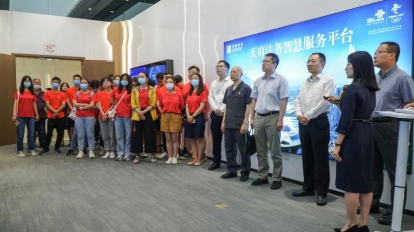 7月27日,课程团队前往天府中央法务区、天府新区成都片区人民法院(四川自由贸易试验区人民法院)进行参访,成都市中级人民法院党组书记、院长、法学院1983级校友郭彦,天府新区党工委委员、管委会副主任、天府总部商务区党工委书记李昂,天府新区成都片区人民法院党组书记、院长罗登亮,党组副书记、副院长徐文波,四川天府新区总部经济局副局长刘强,四川省北京大学校友会常务副会长、四川省北京大学校友会法学分会会长、法学院1980级校友段琳等人陪同参加活动。天府中央法务区是全国首个省级层面提出和推动实施的法律服务聚集区。在建设过程中,天府中央法务区着力推进构建“一心一带多点”。所谓“一心”,是公共法律服务中心;“一带”,即为高端法律服务产业发展带;“多点”,则为法治文化交往节点。以此,形成集公共法律服务、法治理论研究创新、法治论坛交流合作、法治文化教育培训、智慧法务、涉法务全链条服务等功能一体的法治创新聚集区。学生们震撼于其创新发展理念,并在依次参观了检察服务中心、知识产权维权援助中心和法律诉讼服务中心后,切实了解到习近平法治思想如何引领司法改革向着便民利民的方向前进。