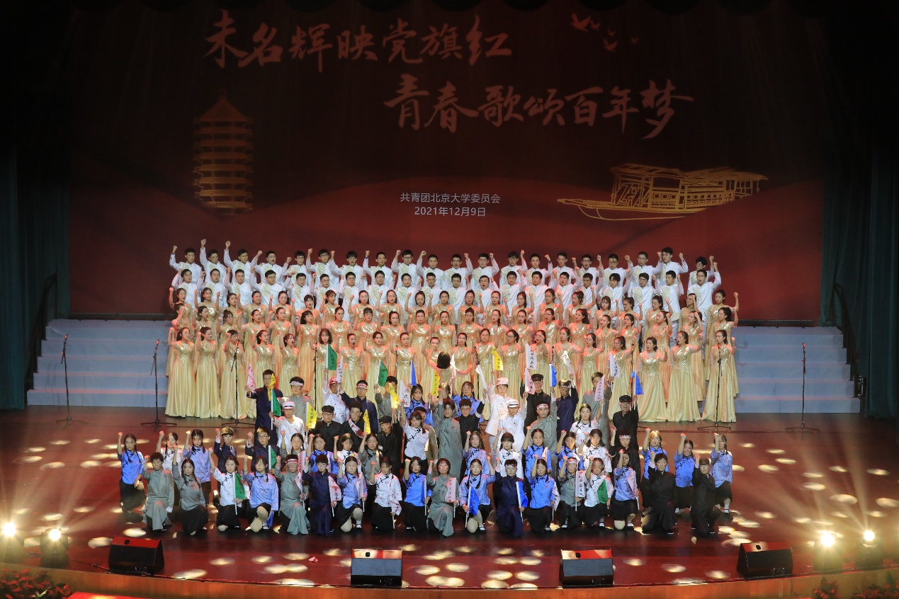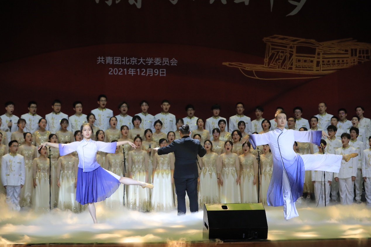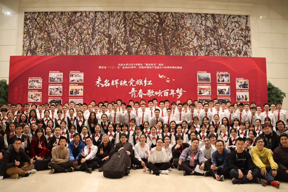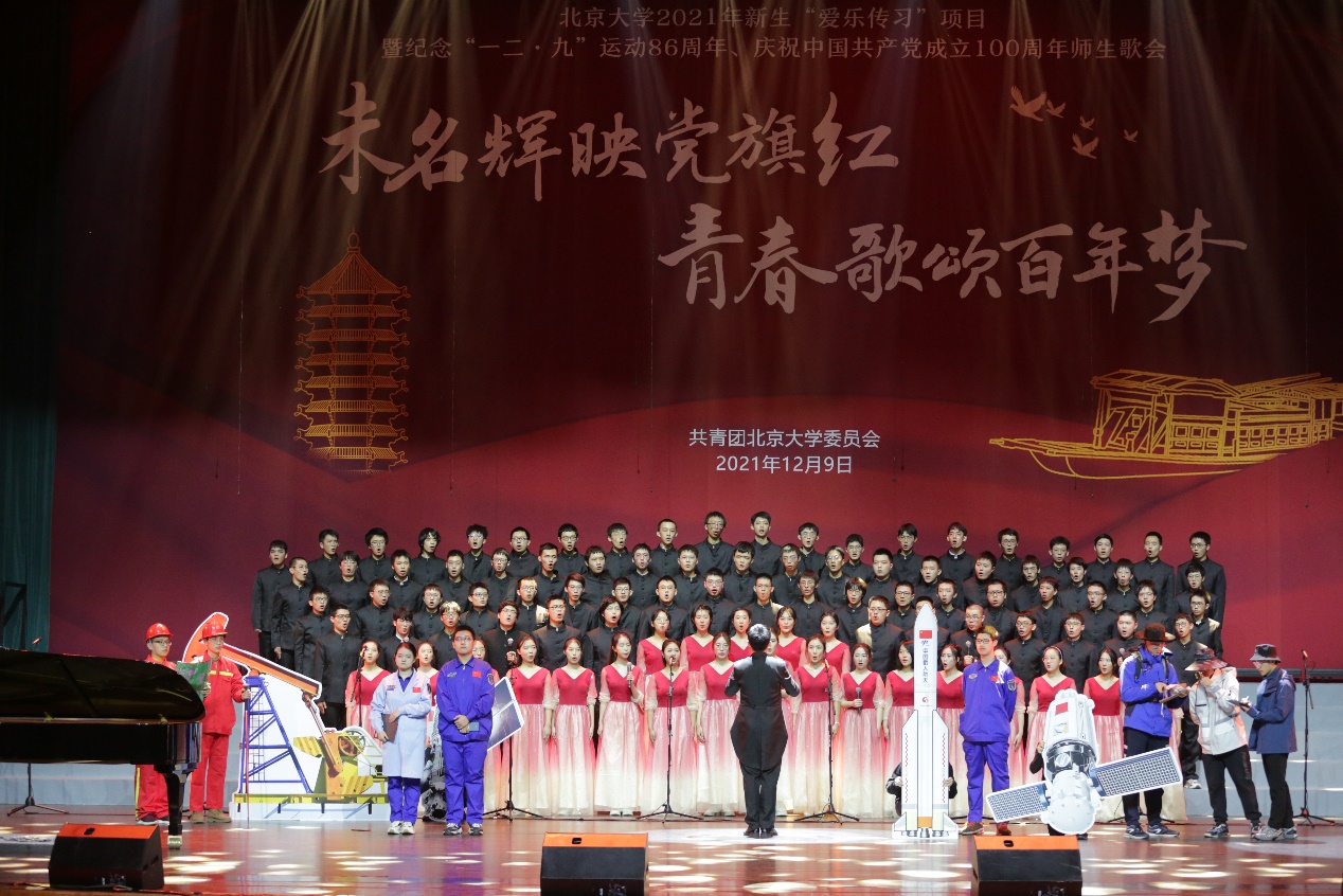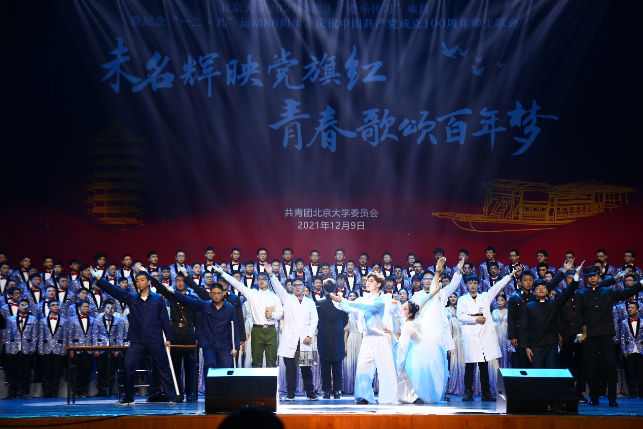 北京大学连续多年举办“一二·九”师生歌会,数十年间引领北大青年在歌声中追思峥嵘岁月,在传习中思考时代主题,将爱国主义教育和集体主义教育融入到声乐美育教育中,年复一年,重温革命先辈为实现民族独立和解放而奋勇前进的革命历程,赓续“团结起来,振兴中华”和“请党放心,强国有我”的青年使命。本届纪念“一二·九”运动86周年、庆祝中国共产党成立100周年师生歌会的主题是“未名辉映党旗红,青春歌颂百年梦”,由28个院系师生组成的22支代表队经历了两个多月的集体排练,倾情演绎,呈现出较高的艺术水准。