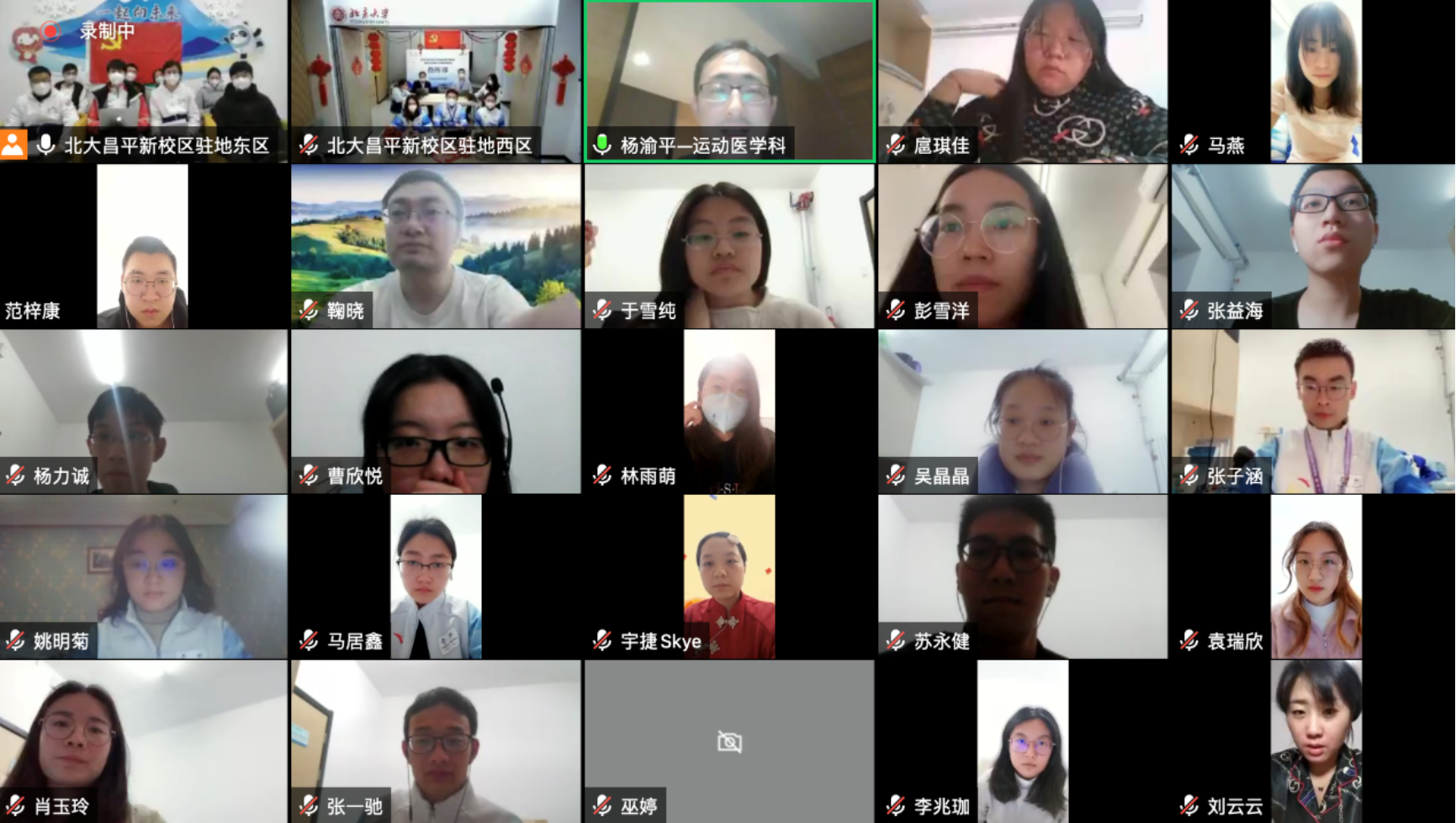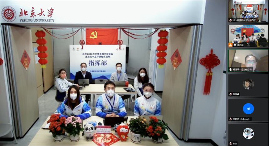 为展现冬奥风采,弘扬志愿精神,团结引领广大青年在拼搏中绽放青春,2月23日20时,北京大学昌平新校区驻地举办“青春心向党,圆梦冬奥情”主题党团日活动。活动通过视频会议线上开展,同时设立驻地东区和西区两个线下分会场,驻地临时党支部书记鞠晓,副书记刘金秋、贾方健、赵姗,兴奋剂检测中心场馆经理郑重,驻地全体党员、团员代表、工作人员代表参加。本次活动特别邀请到北京大学第三医院崇礼院区冬奥医疗保障团队总队长、临时党支部书记杨渝平医生。活动由赵姗主持。
