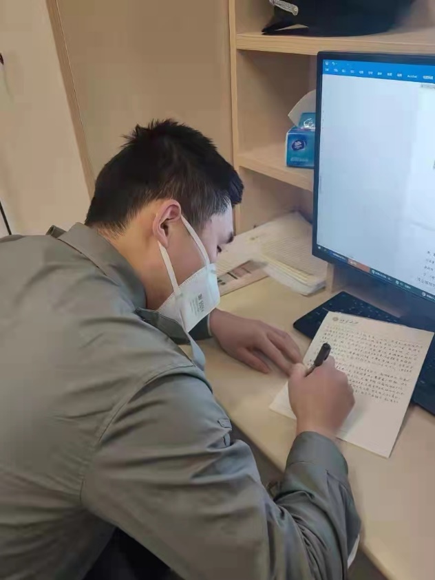 冬奥保障期间,除了志愿者纷纷递交入党申请书、入团申请书、思想汇报,驻地许多工作人员也向党组织递交了入党申请书,保安甄文进就是其中一员。2020年疫情发生时,他看到年纪相仿的“90后”党员冲锋一线、舍生忘死,从那时起,向党组织靠拢的“红色”种子便在心里萌芽。2022年初,他光荣加入冬奥保障团队,在驻地工作中,他接触到很多优秀党员,无论是担当有为的志愿者,还是敬业奉献的专班老师,都让他感受到一个共产党人的坚定与担当,早日加入党组织、成为像他们一样的人成为甄文进现在最大的心愿。