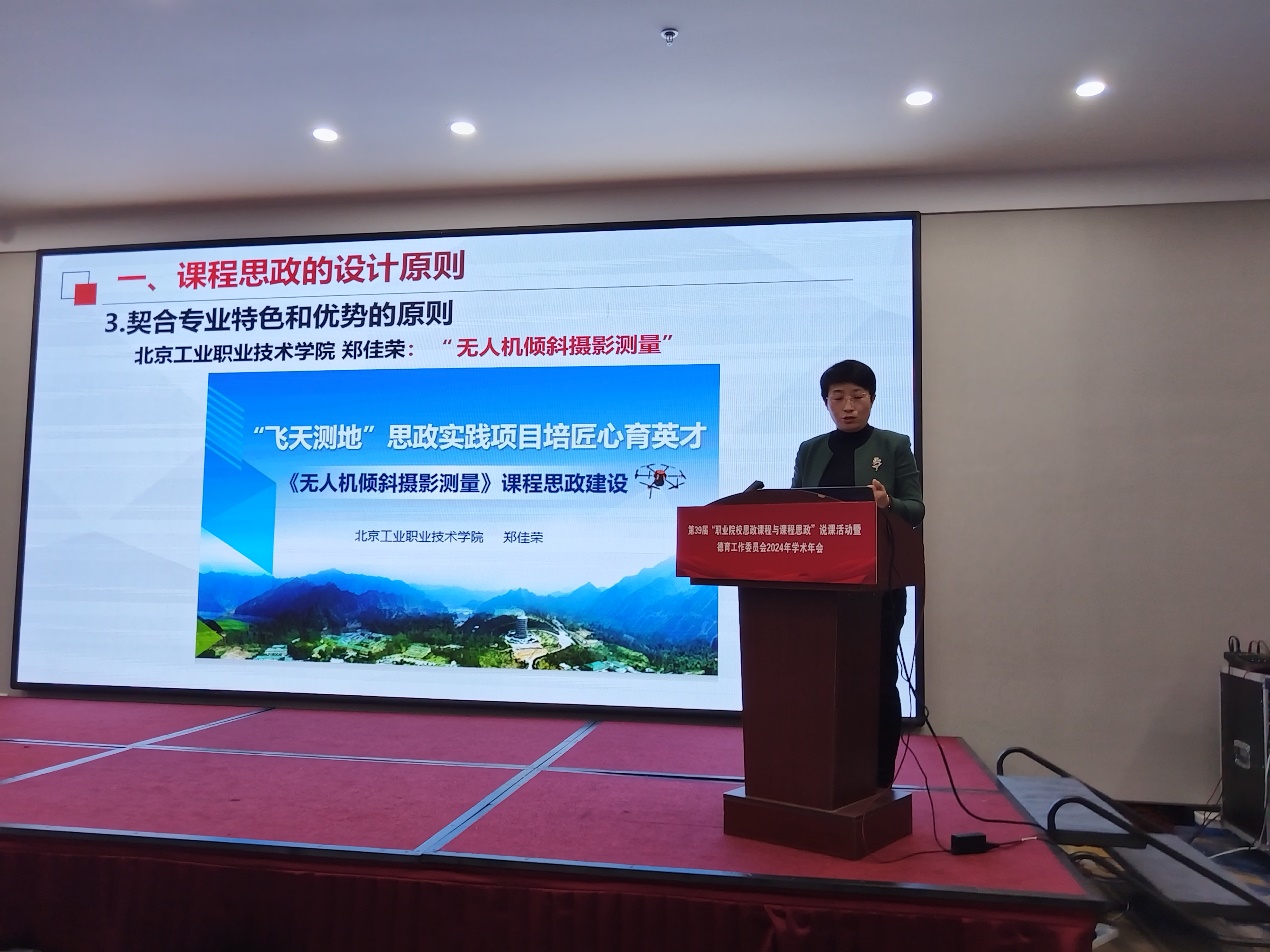 为深入贯彻党的二十大、党的二十届三中全会精神和习近平总书记关于思想政治教育的一系列重要指示,贯彻落实全国教育大会精神,强化思政引领力,推动思想政治理论课改革创新,促进思政课程与课程思政同向同行,2024年职业院校思政课与课程思政说课研讨会暨全国职业教育德育工作委员会2024年学术年会在河北石家庄举办,全国200余所中高职院校参会。大会主题是“职业院校思政课与课程思政说课研讨”,工程测量技术专业教师郑佳荣主持的《无人机倾斜摄影测量》课程在我校教务处、建筑与测绘工程学院打磨和推荐下从全国700余门课程中脱颖而出。