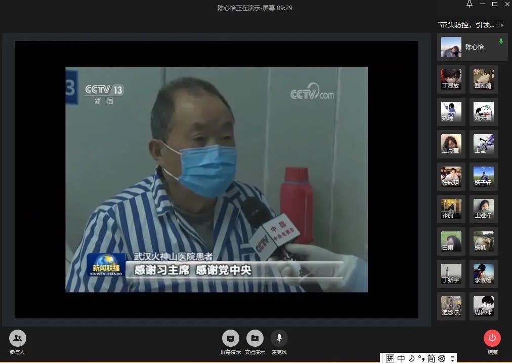 最后,支部书记对会议内容进行了总结,并且叮嘱各位党员同志疫情期间在做好自我防护工作的同时也要提升自我保护意识,认真学习党的理论知识和专业课程,充分发挥学生党员的先锋模范作用,带头做好疫情防控工作,认真执行学校疫情期间的各项要求,为打赢疫情防控阻击战贡献力量。