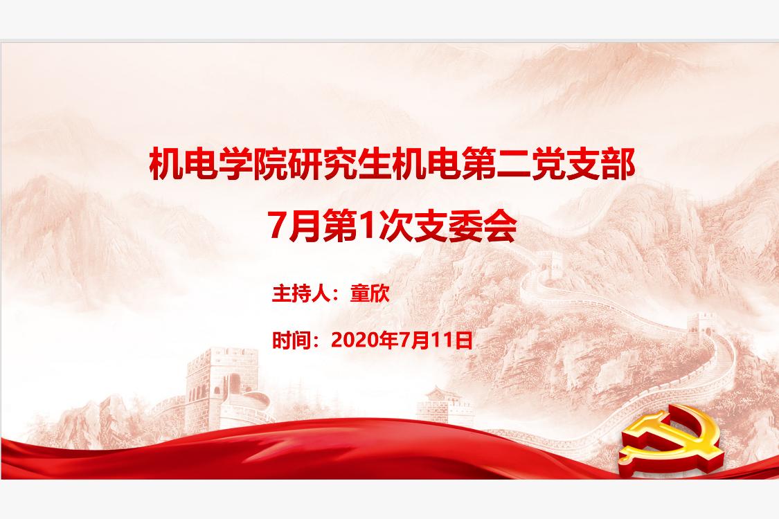 2020年8月16日,机电学院研究生机电第二党支部委员会以腾讯会议形式召开了本月的第1次支委会,支委成员4人全部出席。