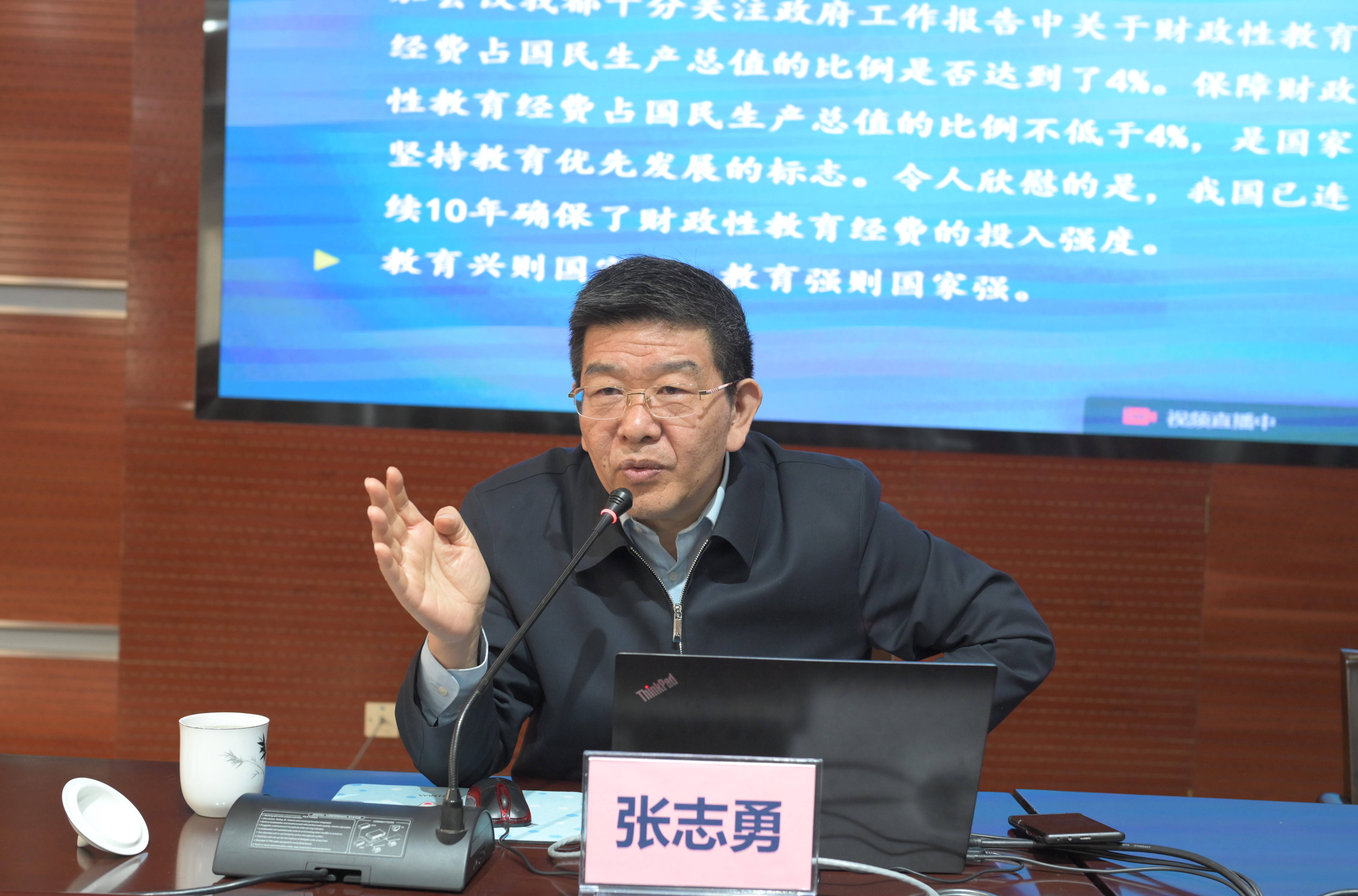 3月23日上午,京师工会会员大讲堂“全国两会精神专题学习报告会”在北京师范大学海淀校园图书馆三层报告厅举行。全国政协委员、国家高端智库教育国情调查中心主任、北京师范大学教授张志勇应邀作报告。报告会由校工会、机关党委、图书馆党委、教育学部党委联合主办,由教育学部工会承办,信息化建设办公室/信息网络中心提供长江雨课堂网络直播平台支持。校内相关部门负责同志到场学习,教育学部工会主席杨明全教授主持报告会。本次报告会采用线上和线下相结合的方式,北京校区和珠海校区共500余名师生参加了学习。