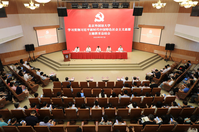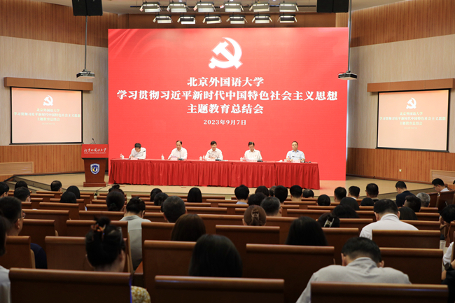 2023年9月7日,北京外国语大学学习贯彻习近平新时代中国特色社会主义思想主题教育总结大会在阿语楼国际会议厅举行。