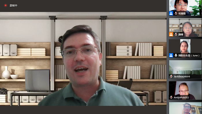 8月10日,中共中央总书记、国家主席习近平给包括北外3名外籍教师在内的“国际青年领袖对话”项目外籍青年代表回信。8月11日晚,北外组织召开“学习习近平总书记给‘国际青年领袖对话’项目外籍青年代表回信精神”专题座谈会,由于疫情影响,身处世界各地的北外外籍教师克服时差,通过腾讯会议平台在“云端”相聚,来自全校各院系的30多名外籍教师、国际交流与合作处以及部分院系中国教师代表参加线上座谈。