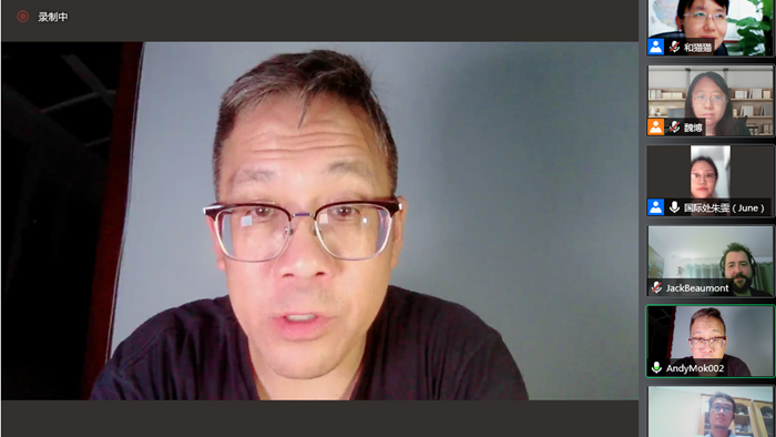 北外专用英语学院美籍教师莫天安(Andy Mok)分享了他参与“国际青年领袖对话”项目论坛组织工作的心得体会。他表示,作为在中国的外国人,大家比其他任何人都更加真实地感受到中国的现代化,了解中国人民来之不易的幸福。很高兴项目能够成功举办,参与者给习近平主席写信并得到了回应,让他感到活动是非常有价值的,也期待未来与北外的各位同事通过其他合作方式,了解更多中国故事,向世界讲述更多中国故事。