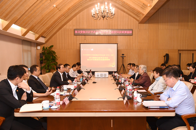 北外党委第一时间召开学校党委理论学习中心组(扩大)会议,专题组织学习习近平总书记重要回信精神,凝聚思想共识,部署落实举措,全面推动学校平稳较快高质量发展。学校各部门、学院迅速行动,组织师生认真学习,畅谈体会,掀起学习习近平总书记给北外老教授回信精神的热潮。