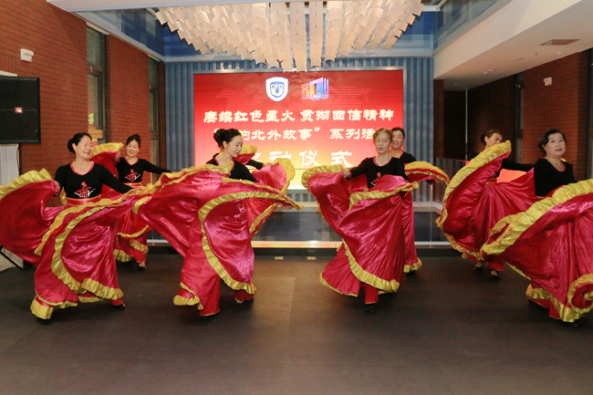 活动气氛在退休老同志表演的舞蹈《飞》中被推向高潮,舞蹈展现了离退休老同志欢乐和谐、积极向上的生活态度,也彰显了北外开拓进取、奋发向上的精神风貌。
