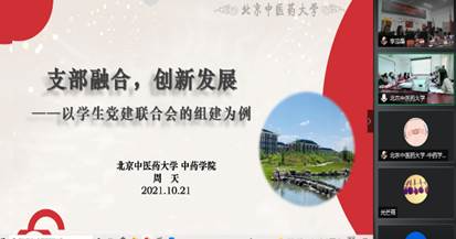 为加强党建思政交流合作,北京中医药大学中药学院与云南中医药大学中药学院于2021年10月21日共同举办“党建引领 思政铸魂”交流研讨会,分享党建工作和课程思政建设中的成果与经验,交流学习,共同发力,促进两校共同发展进步!本次会议以线上线下相结合的形式举行,由北京中医药大学中药学院中药化学研究生第一党支部支部书记张薇和云南中医药大学中药学院李宝晶老师主持,两校学院领导,教师代表和学生代表参加会议。其中中药化学研究生第一党支部支委和部分党员同学参会,共同学习党建经验,取长补短,加强支部建设!