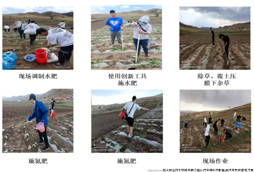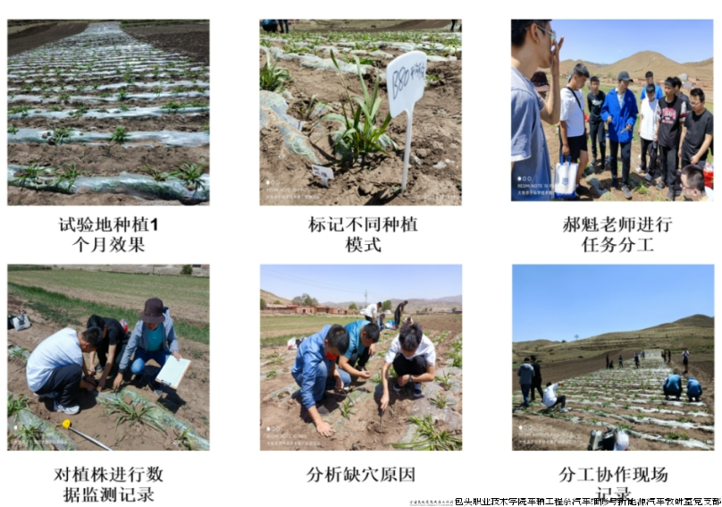 菌草科学技术推广团队将本次科研实践所需物资搬运到试验地,现场进行种植效果评估和任务分工。每个小分队的学生积极分子,在党员教师成员的带领下,对每一行穴的种植生长数据(植株高度、分蘖数、健康状况)进行监测记录,并分析缺苗原因,总结种植过程中的注意事项,以此锻炼学生认真思考进行科学探索的能力。经过数据监测记录形成不同模式下种植效果的数据因子,为后期推广应用提供数据支撑。