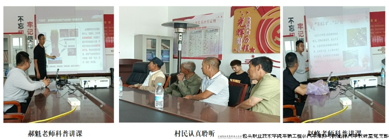 党员教师郝魁老师和赵峰老师为村中农民进行授课。郝魁老师主要讲解的内容标题是“菌草科技-生态治理和产业振兴的新思路”,讲解菌草技术在北方高寒地区的应用和种植技术,村民们初步了解了菌草的生态效益和经济效益。