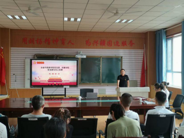党课是对党员进行经常性教育的基本形式,是强化党员党性观念和基本素质的重要措施。党支部书记讲党课,是党的优良传统,是新形势下加强党员教育的有效途径。按照党史学习教育工作安排,根据学院党委对基层党组织书记交叉上党课工作要求,2021年6月12日上午10点整,冶金与资源学院副书记王军国同志和传媒学院党支部副书记孟轩羽同志在传媒学院二楼会议室为冶金与资源学院和传媒学院全体党员教师上了题为《践行兵团精神,在工作中讲奉献》和《学习党史,回顾入党誓词的历史沿革》的党课。