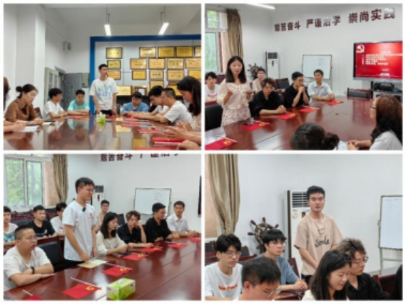 接着,毕业生党员代表王瑜、李岳琦同学表达了对支部和学院的眷念之情,勉励非毕业班党员传承优良传统,不忘初心,加强党性修养,为自己的目标努力奋进。非毕业班党员代表龚雨笙、江艺豪同学感谢学长们在学习上和生活上给予的无私帮助,为毕业生党员送上了最真挚的祝福。