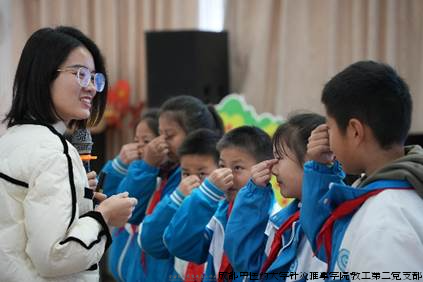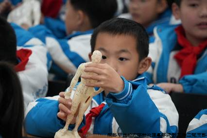 成都中医药大学教工第二党支部党员程施瑞副教授为师生们带来了《针灸铜人之旅》的精彩讲述。程老师详细介绍了针灸铜人的历史背景、构造特点及其在中医针灸教学中的重要作用。她以通俗易懂的语言深入浅出地带着孩子们初步了解了4个穴位:睛明穴、攒竹穴、太阳穴、风池穴,让师生们领略到了针灸铜人的神奇魅力,深刻感受到了中医药文化的博大精深。