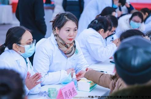 开幕式后,由19人组成的专家团在马湖公园广场开展了大型名中医义诊活动,为当地市民提供了一对一的中医诊疗服务,其中成都中医药大学针灸推拿学院教工第二党支部张虹教授、周海燕教授页参与了义诊活动。