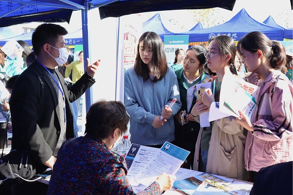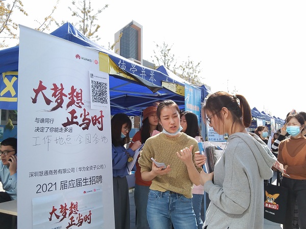 稳就业助民生,保就业促发展。为应对新冠肺炎疫情对大学生就业的影响,学校狠抓“就业”“防疫”两不误,多措并举助力大学生就业。出台困难毕业生就业帮扶办法,多措并举落实“一对一”帮扶机制;制定就业基地建设与维护管理办法,努力拓宽毕业生就业渠道;推行“以学院主体、全员参与”就业工作体系,依托“三全育人”推进毕业生就业工作;开展“就业帮你忙”“职业生涯规划月”等就业指导服务活动,切实转变毕业生就业观念,提升就业创业能力;打造“线上+线下”校园就业市场,持续增加就业岗位有效供给,以实际行动服务大学生就业。2021届毕业生秋季校园双选会的顺利举办,正是学校落实“一把手”工程,坚持就业“民生工程”中心地位的具体体现。(文/丁继勇 摄/大学生通讯社、易班发展中心提供 审/华紫武)