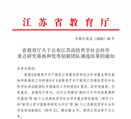 日前,江苏省教育厅发布《省教育厅关于公布江苏高校哲学社会科学重点研究基地和优秀创新团队遴选结果的通知》(苏教社政函〔2020〕20号),我校经济管理学院牵头申报的“智能制造产业经济研究院”获批江苏高校哲学社会科学重点研究基地。这是我校在该领域取得的重要成果和突破。