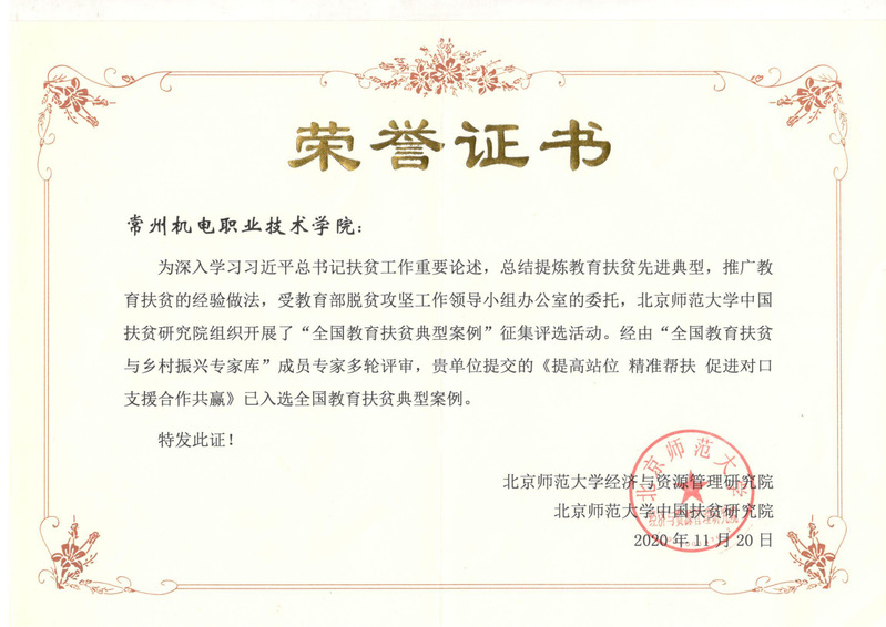 近日,受教育部脱贫攻坚工作领导小组委托,由北京师范大学扶贫研究院具体负责的全国教育扶贫典型案例征集活动,经“全国教育扶贫与乡村振兴专家库”成员多轮评审,评选并公布了全国教育扶贫典型案例。我校报送的案例《提高站位 精准帮扶 促进对口支援合作共赢》成功入选。