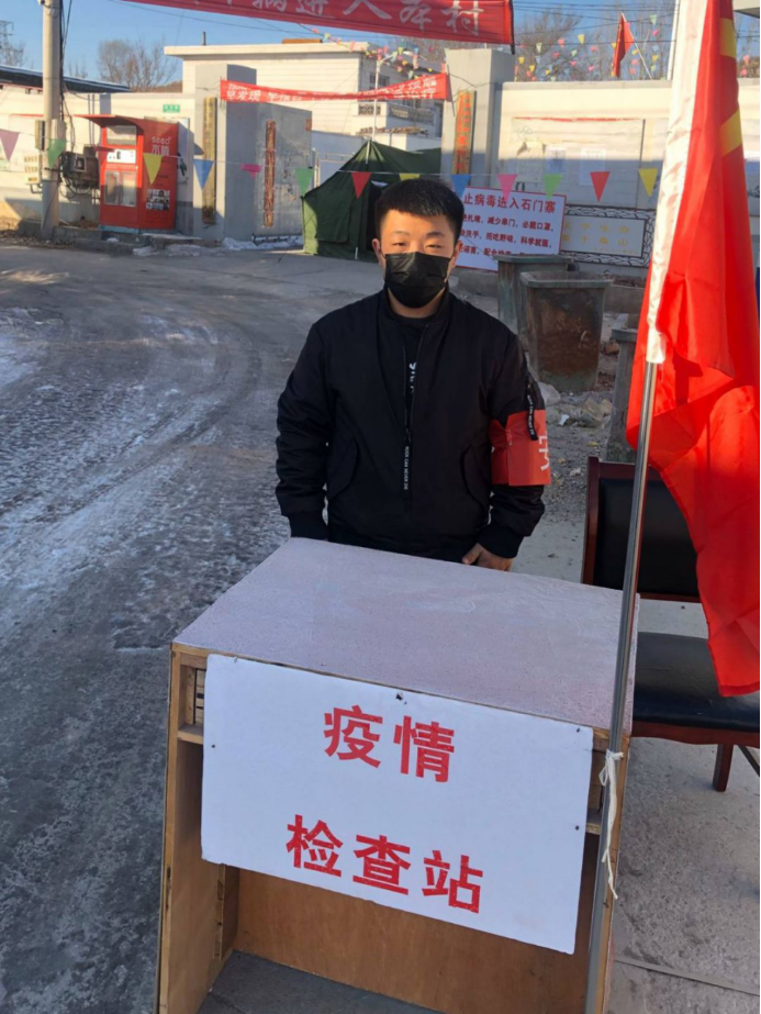 王玉博是17级艺术设计一班的学生,更是一名学生党员,家住河北省秦皇岛市海港区石门寨镇北河村。在美术学院担任学生会主席一职,曾获得2017-2019学年“美院荣光 ”。他在校期间就积极参与学院各项工作,在假期时,他在家乡报名参与了疫情防控志愿工作,负责对出行人员测量体温,日常值班封管村庄入口和发放本村人员出入证工作。他以身作则,用自己的实际行动,证明着他的担当,他说道:“自己不能像白衣天使们一样奋斗在一线,但我也想贡献自己的一份力量。身为大学生党员,我们应该积极参加志愿者活动,为社会做贡献。学习党的精神是我一直在做的事情,我希望能够用实际行动承担我的责任,我相信这场战役很快就会胜利!武汉加油!中国加油!”