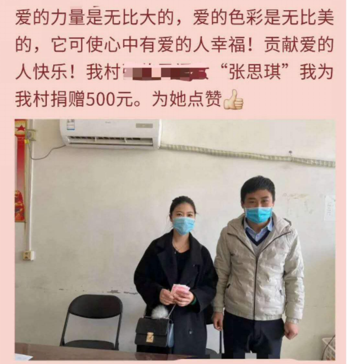 张思琦是美术学院16级本科设计三班学生,家住唐山市平安城镇西门庄村,曾担任美术学院16届团总支宣传部副书记,获得过17-18学年院级三好学生,在校期间积极参加各项活动。疫情来袭,作为一名党员以及昔日的学生干部,她积极肩负起责任,以身作则,在假期中同一些村委会的老党员以及志愿者对村里防疫工作进行考察,在人员容易聚集的地方设立劝返点,对一些防疫知识比较淡薄的群众及时进行劝导,并且利用广播形式向广大群众讲解防疫知识。她说到;“作为一名大学生党员,积极组织号召大家为国家捐款捐力,是我的责任,既使不能奋斗在一线,但我也要为祖国疫情和控制贡献自己的一份微薄之力,众志成城,抗击疫情,我们终会胜利。”
