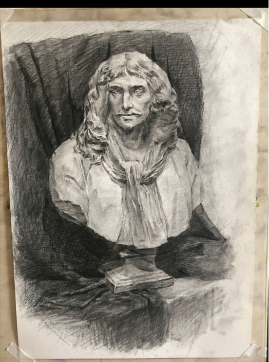 一个月的形态素描已经结束,我受益匪浅,从过去单纯的描摹对象到如今知道自己每一步在解决的问题。我认识到,绘画是一个过程,认识的过程,在一张白纸上要描绘出一个人物形象就类似于做雕塑,一层层解剖,一点点去堆砌。从骨骼结构肌肉到外部形状......素描作画中,不仅仅需要注意整体的比例关系、头颈肩的关系、还有头和手的位置关系,它们应该经得起反复推敲以及不断调整以达到心中的效果。
