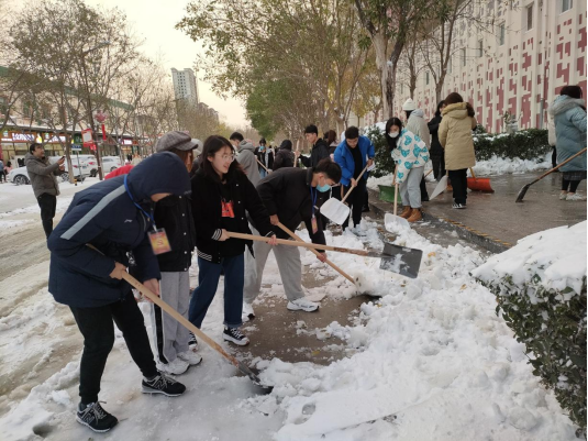 党员积极分子师生扫雪现场