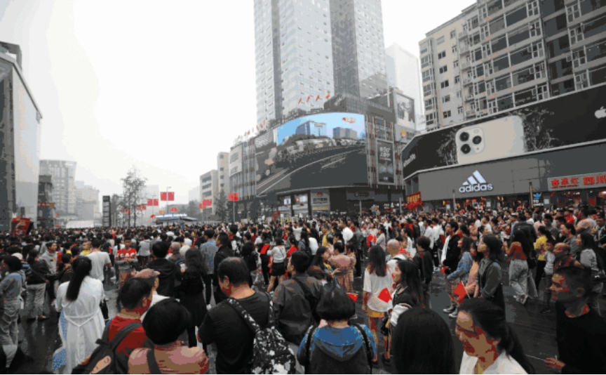 人民群众挥着色彩明丽的小国旗在场外观礼,激动无比的欢呼声传达了他们生长在这片土地上的自豪之情。