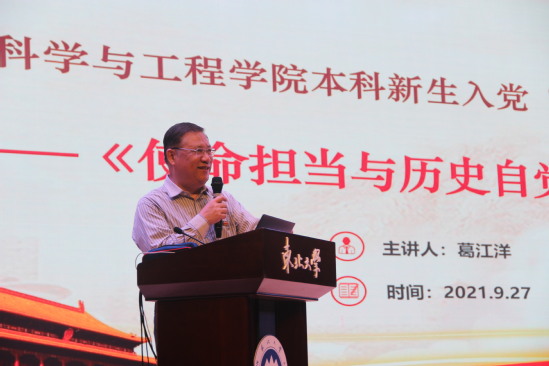 9月27日,东北大学计算机科学与工程学院在浑南校区图书馆报告厅举办了“使命担当与历史自觉”主题讲座。此次讲座邀请解放军退役大校、长征和国防文化学者、原解放军某师机关政治部主任葛江洋主讲。学院党委组织员、团委书记、本科生辅导员以及2021级本科生共计500余人参加了讲座。