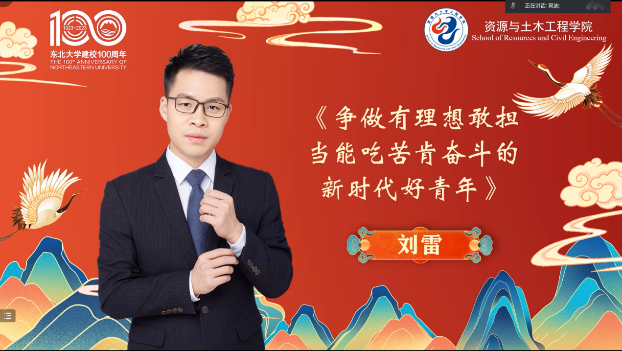 2023年2月2日,学院邀请我院毕业生、共青团中央团校讲师刘雷做客“百年校庆大讲堂”,通过线上视频直播的形式面向广大校友及全校师生作《争做有理想敢担当能吃苦肯奋斗的新时代好青年》的专题报告。