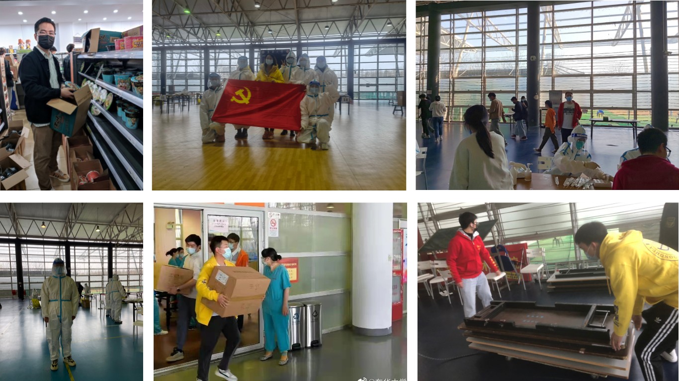 学院师生党支部闻令而动、担当笃行,全面进入“战时”状态,立即召开“党员先锋冲在前,疫情防控勇担当”线上系列专题会,锻造支部战斗堡垒,激励师生党员在疫情防控中弘扬伟大建党精神、增强斗争本领,组织云上运动会、维护实验室安全和心理关切疏导等温暖实事;学院党员服务中心迅速启动“党建引领勠力同心,筑牢疫情防控”行动,师生党员主动报名疫情防控志愿服务,布置核酸检测现场,帮助师生扫码登记身份信息,协助医护工作者分拣采样拭子和分发检测瓶,维护核酸检测现场秩序。在学校食堂、宿舍楼、爱心超市、学院楼等各个角落都能看到学院党员忙碌的身影,他们用党员的“志愿红”擦亮“请党放心,强国有我”的东华底色。