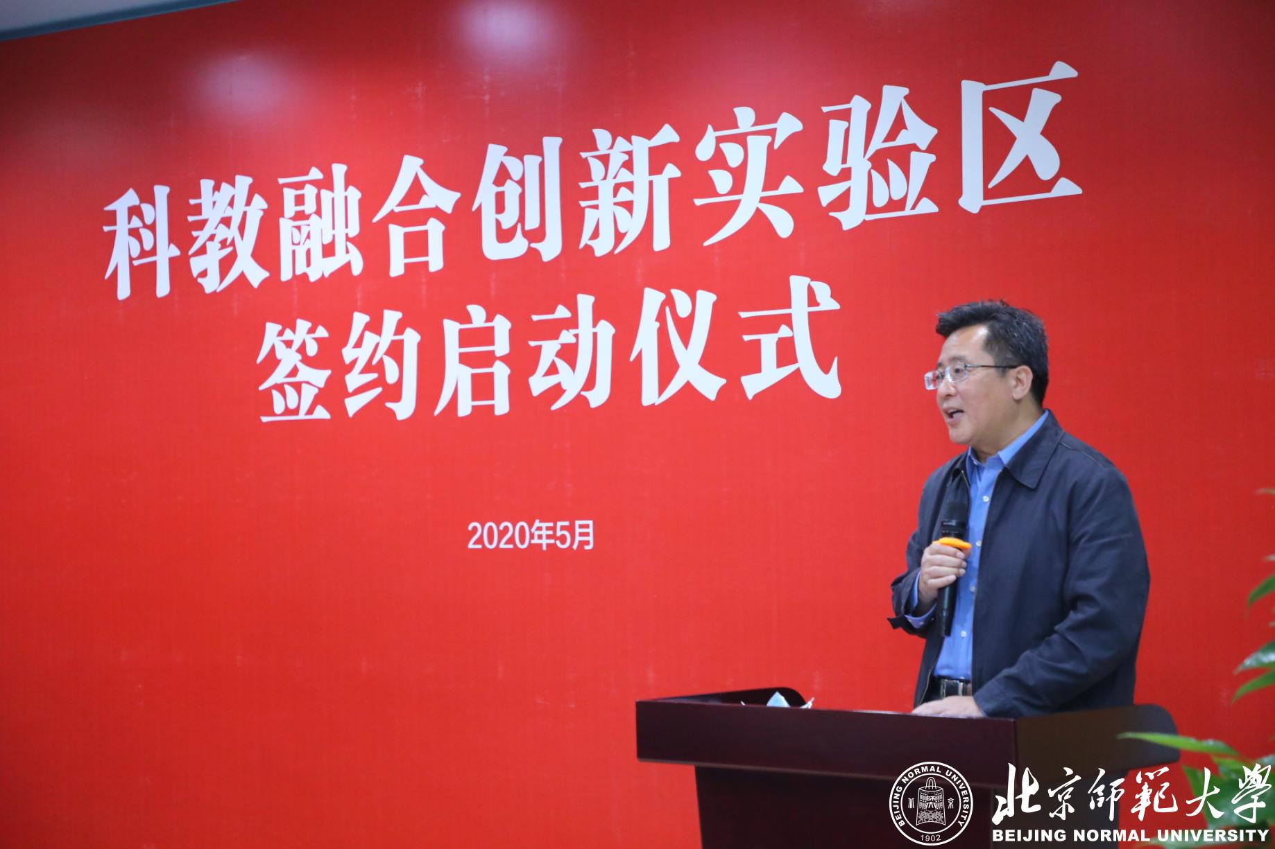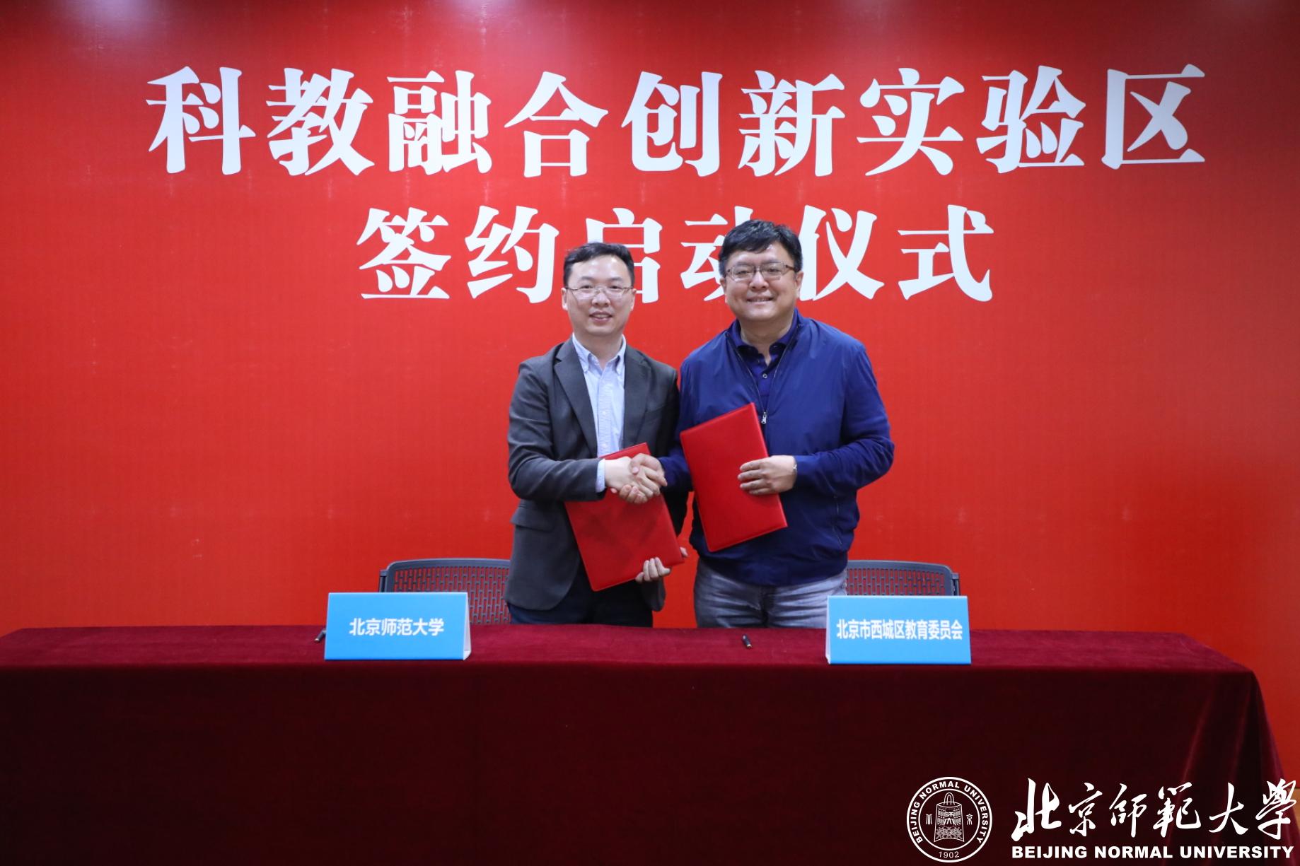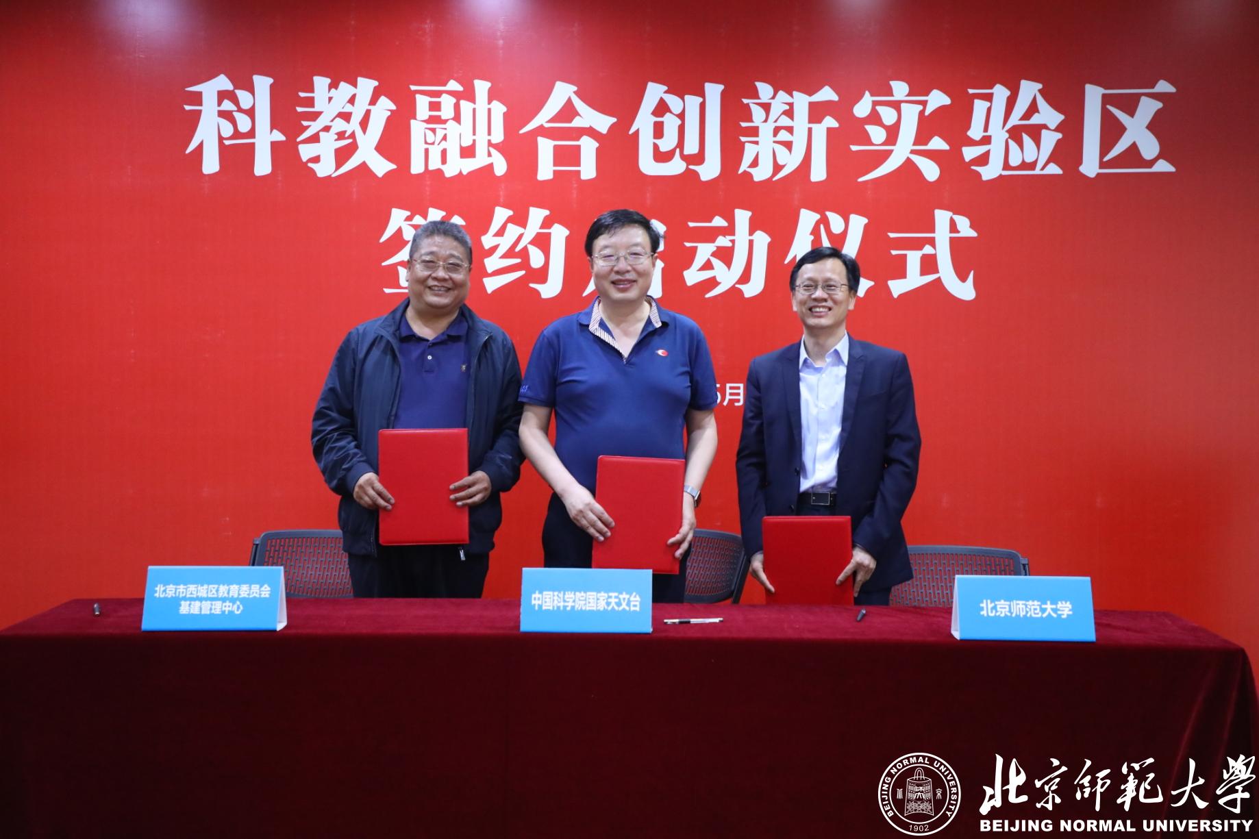 5月15日,科教融合创新实验区签约启动仪式在北京市昌平区育荣国际教育园区举行,北京师范大学副校长王守军、西城区副区长缪剑虹、中国科学院国家天文台副台长郝晋新,西城区教育委员会、昌平区教育委员会、沙河高教园区管委会、国家天文、北京师范大学相关部门负责同志出席仪式。